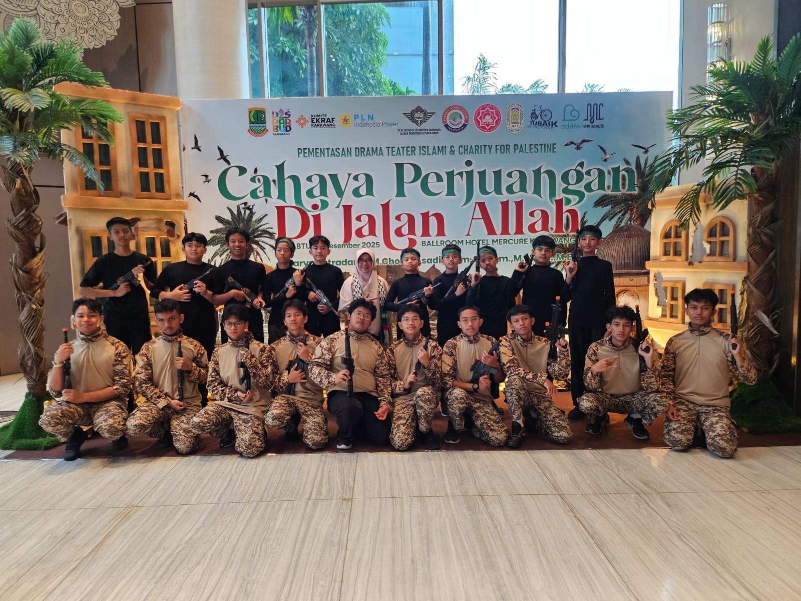 Karawang — Kepedulian terhadap isu kemanusiaan Palestina diwujudkan melalui pementasan yang sarat makna. Sebanyak 22 siswa Sekolah Al Irsyad Al Islamiyyah Karawang sukses ambil bagian dalam Pentas Drama Teater Islami untuk Palestina berjudul “Cahaya Perjuangan di Jalan Allah”, karya Mas Cholidi Asadil Alam yang dikenal luas sebagai Mas Azam, pemeran film nasional Ketika Cinta Bertasbih. Kegiatan ini digelar pada Sabtu, 20 Desember 2025, bertempat di Hotel Mercure Karawang.