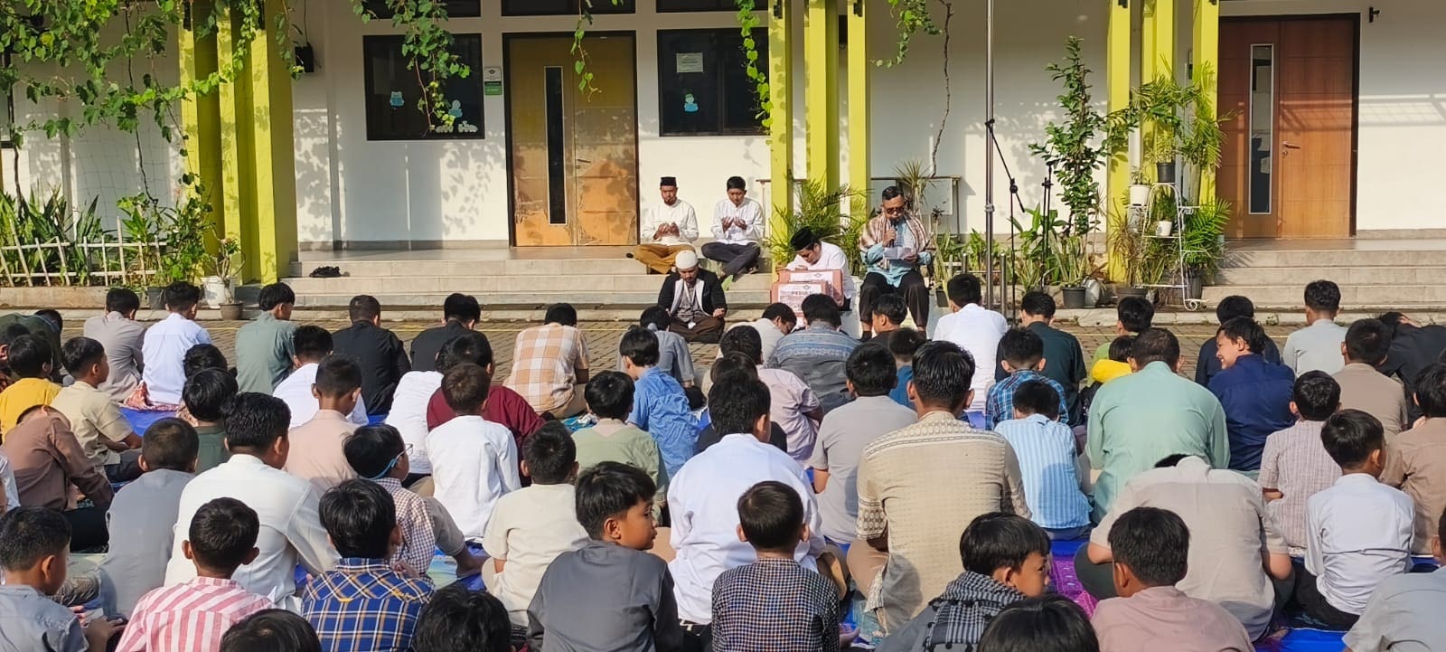 Acara diawali dengan Sholat Duha yang diikuti seluruh siswa dan guru. Suasana haru terasa ketika Sholat Ghaib dipimpin oleh Ust. Afit (SMA-IT) untuk area Banin dan Ustazah Lilis (SMPIT) untuk area Banaat. Seluruh siswa dan siswi dari SDIT, SMPIT, hingga SMA-IT khusyuk memanjatkan doa agar Allah memberikan ketabahan bagi para korban dan mengangkat segala kesulitan mereka.